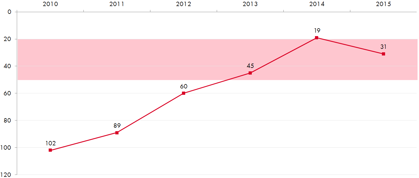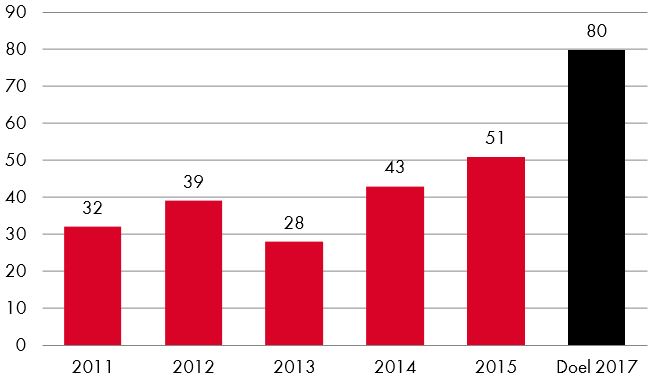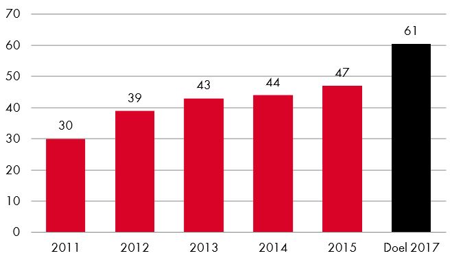 Met onze maatschappelijke verslaggeving bereikten we de 31ste plaats op de Transparantiebenchmark (2014: 19), waarmee we binnen de beoogde bandbreedte blijven van de top 20 tot 50.